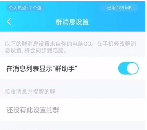 5、在群消息设置页面中,可以打开或者关闭“qq群发小助手”,就能在消息列表中开启或者是关闭群助手了。