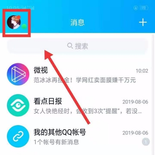 1、打开手机QQ后,在消息页面中,点击左上角自己的头像。