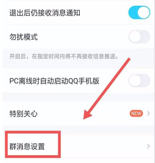 4、进入消息通知页面后,下滑页面,找到群消息设置,点击群消息设置。