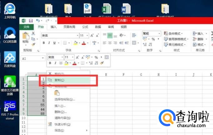 选中单元格,右击选择复制。