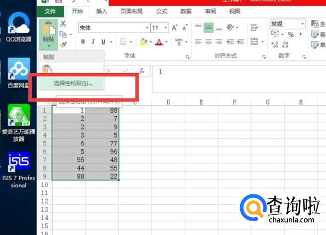 在界面上找到粘贴,然后点击选择性粘贴。