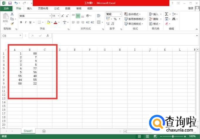 首先在工作簿中输入一些数字,如下图所示。
