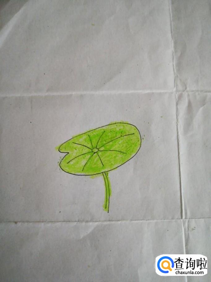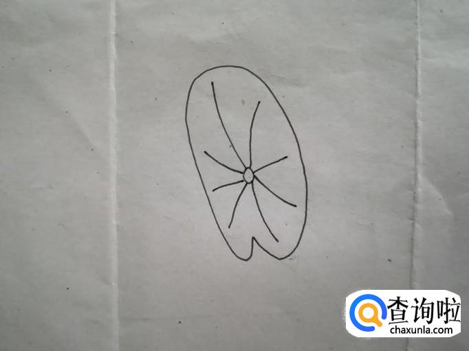 在画一个荷叶的轮廓,记得要画一个圆润的缺口,这样比较像真实的荷叶。