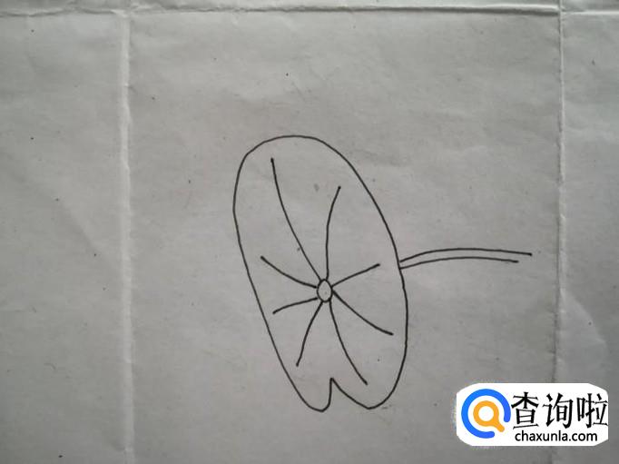 然后用弯曲的线条画荷叶的茎干的走形,向四周发散。