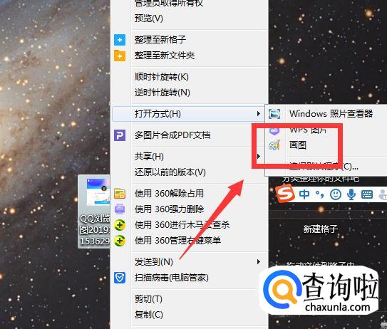 在桌面上找到该图片,右键点击该图片,再点击【打开方式】。