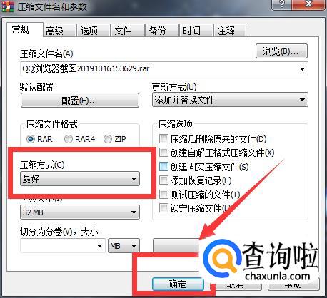 点击之后,就进入到【压缩文件】的界面了,选择如下图的压缩方式之后,点击下方的【确认】。