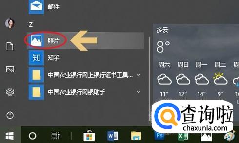 如果电脑系统是win10,那么可以通过系统自带的“照片”应用将其打开,点击开始菜单,然后在列表中即可找到照片应用了;