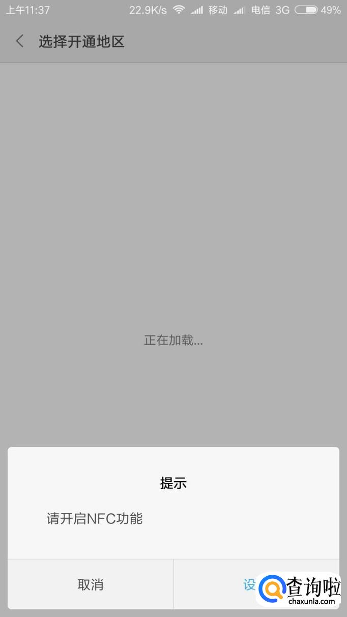 手机需要根据提示打开NFC功能,这也是小米手机作为公交卡的核心技术NFC。