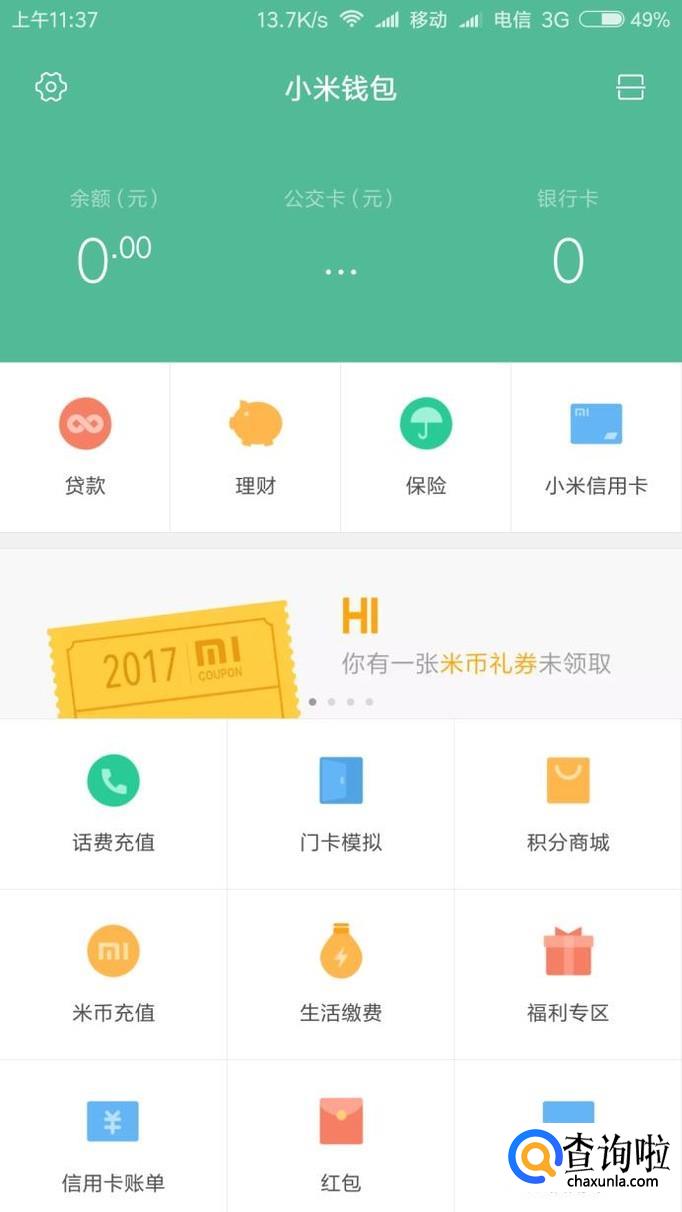 点击小米桌面的推荐文件夹(一般都在推荐),点击小米钱包图标进入程序。