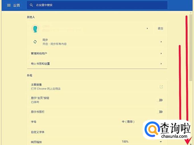 在“设置”界面,向下滑动,至底部。