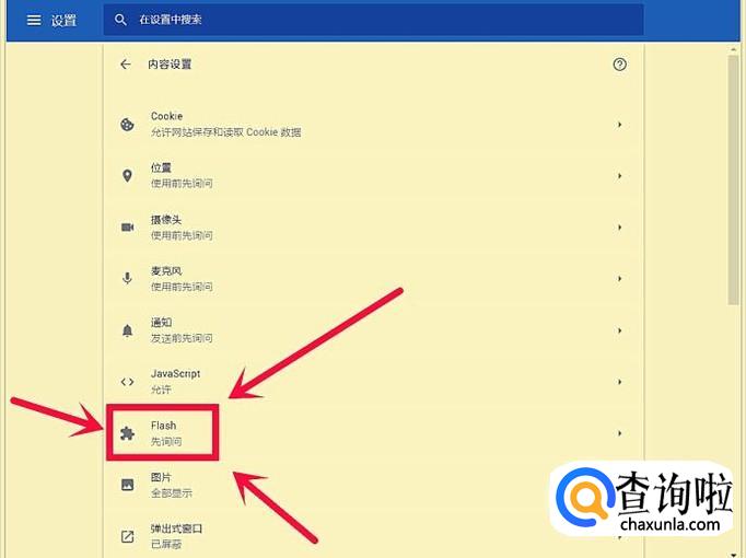 在“内容设置”界面,点击【Flash】。