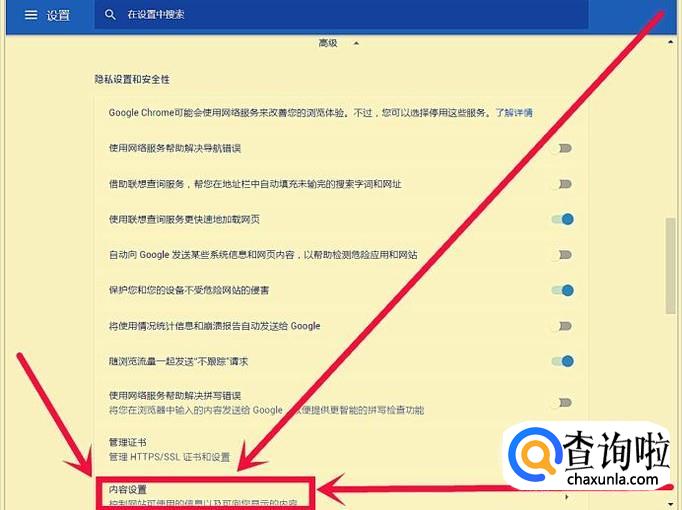 点击【内容设置】。