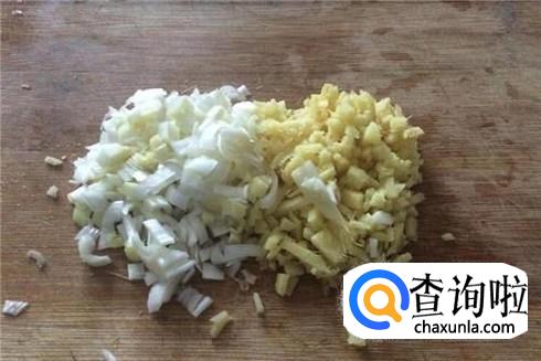 准备好适量的姜葱,一起把姜葱给剁碎。