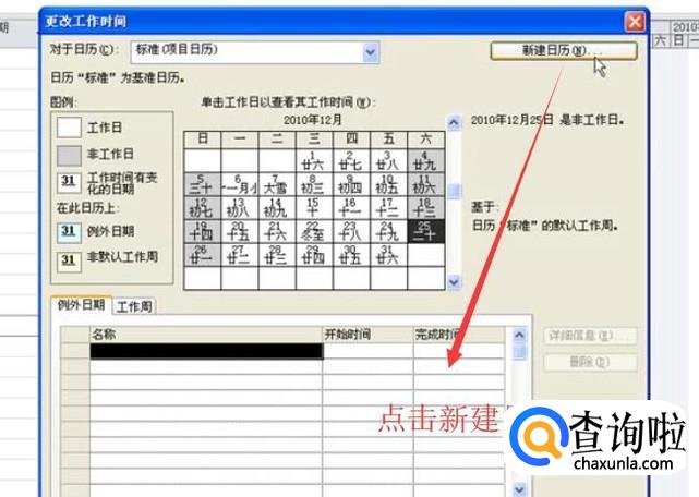 接着在弹出的更改工作时间界面中点击右上角的新建日历按钮,如下图所示