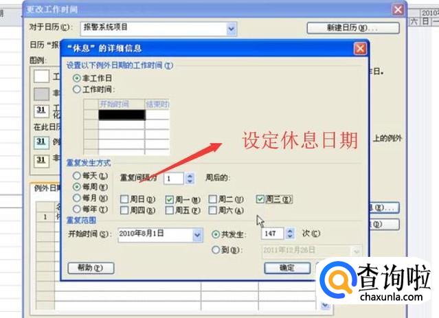 如何在Project 2010中设置项目的休息时间