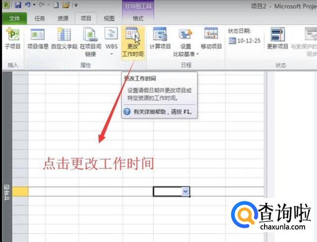 然后我们点击项目菜单下面的更改工作时间选项,如下图所示