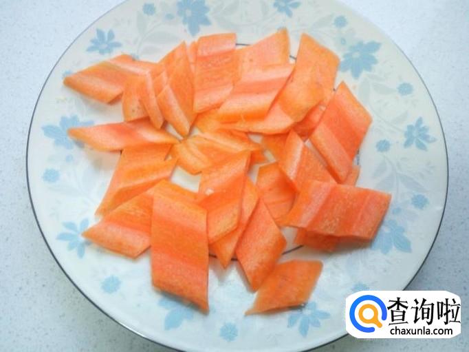 胡萝卜用水洗净,切成薄片。切好葱,姜,蒜,备用。