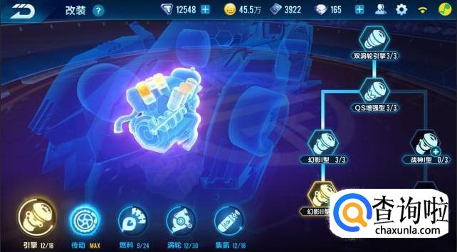 飞车的引擎是加平跑的最高速度,我们如上述所说的加左就好了,幻影战神的引擎就改幻影。让赛车在使用氮气的时候可以突破速度上的极限。