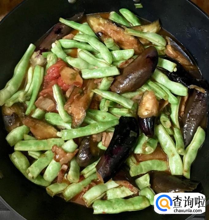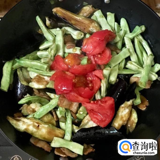 茄子,豆角,西红柿,五花肉,葱,姜,蒜,花生油,盐,水等等