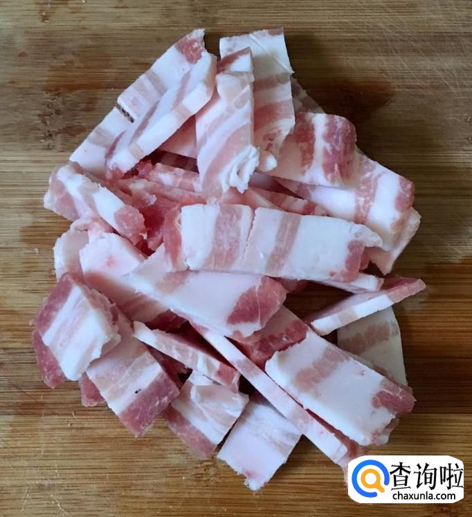 葱、姜、蒜剥去外皮清洗干净分别切成葱花、姜片、蒜片,五花肉适量用水冲洗干净切成厚薄均匀的五花肉片