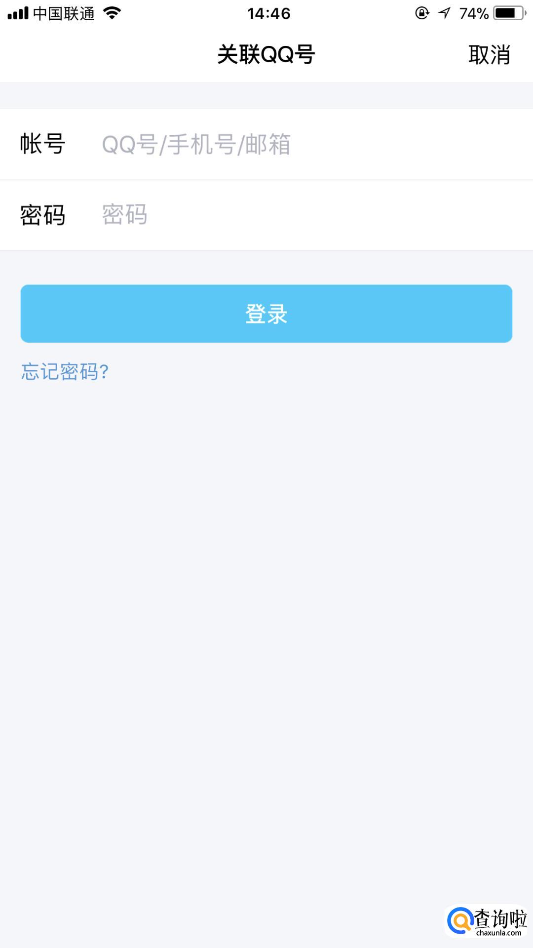 此时进入“关联QQ”,点击后进入绑定页面输入账号密码