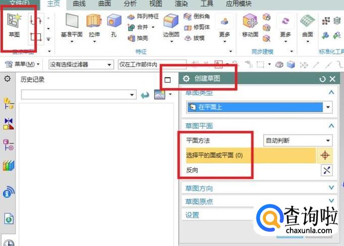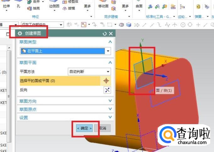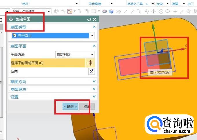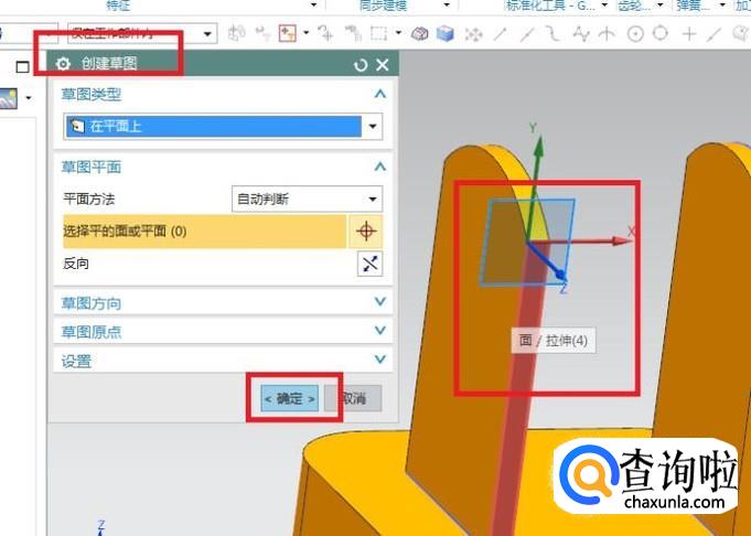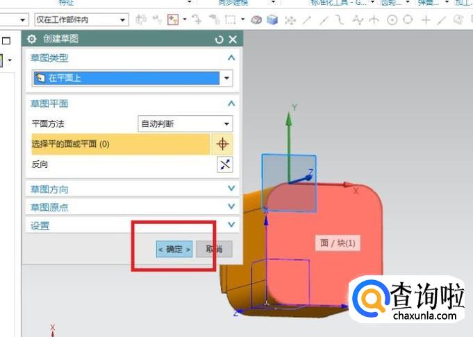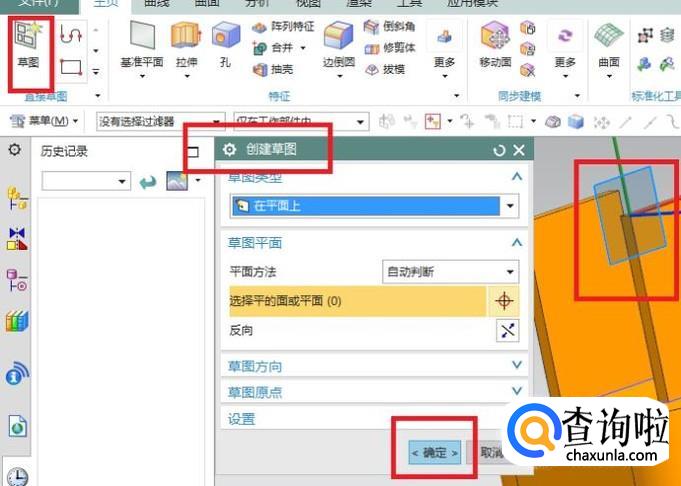 出现“创建草图”对话框,