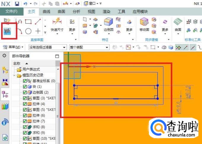 继续创建草图,草图平面见红色平面,