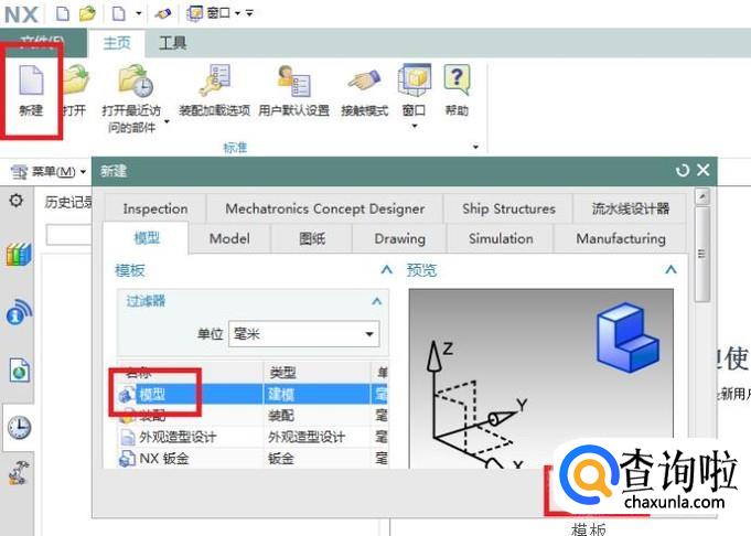 在弹出的“新建”对话框中点击“模型”,