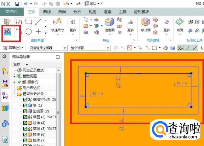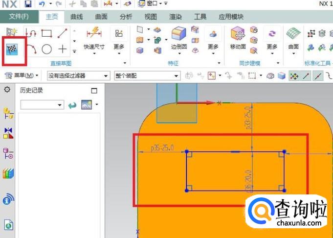 点击草图工具栏中的矩形图标,