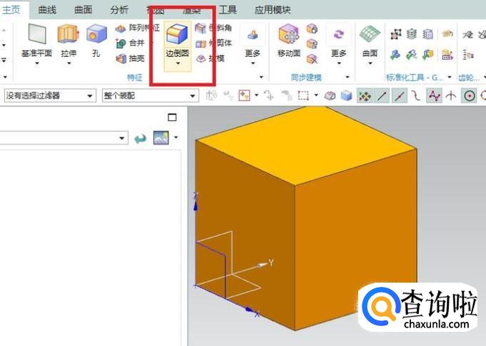 点击工具栏中的“边倒圆”图标,