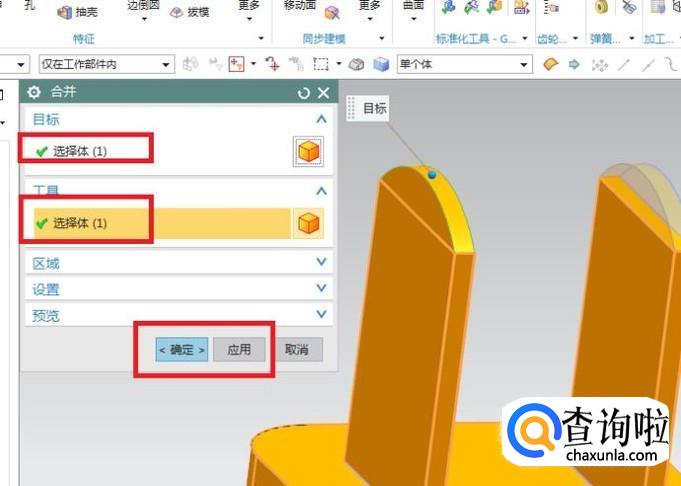 目标一栏选择刚刚拉伸的半圆体,