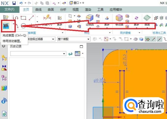 点击草图工具栏中的“完成”图标,