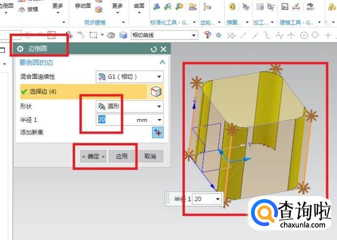 出现“边倒圆”对话框,