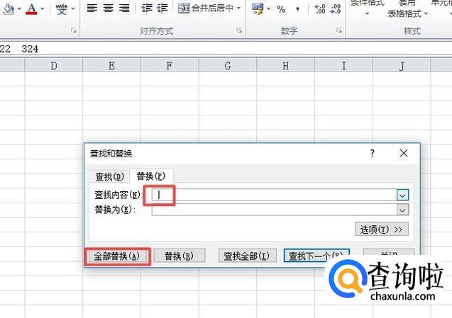 然后在查找内容中输入空格,之后我们点击全部替换;