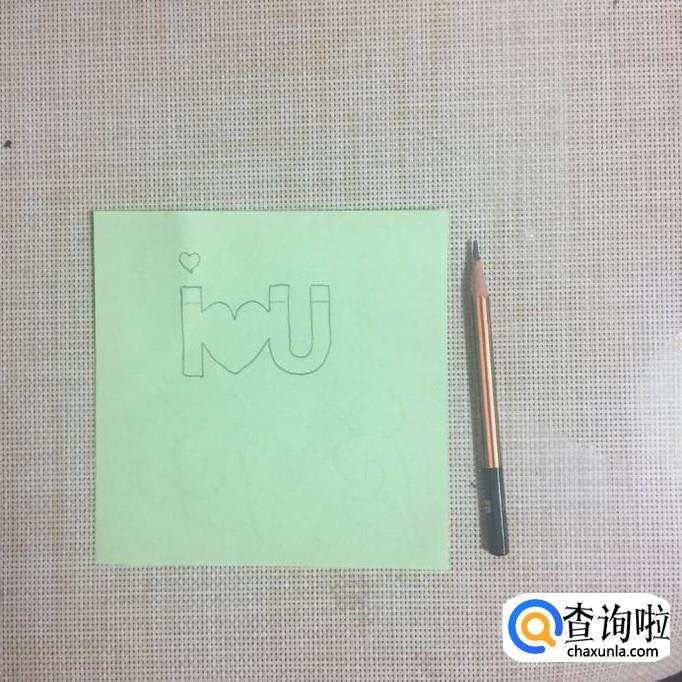 首先在一张正方形折纸上画出I LOVE YOU,如下图所示。