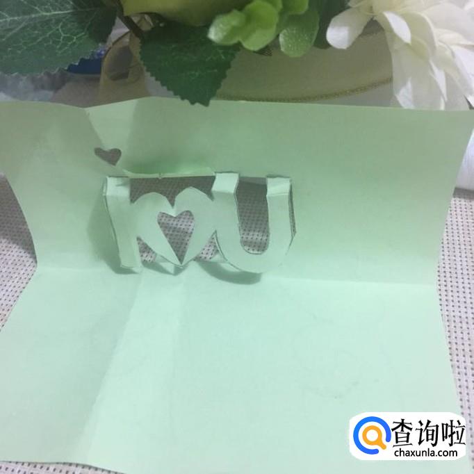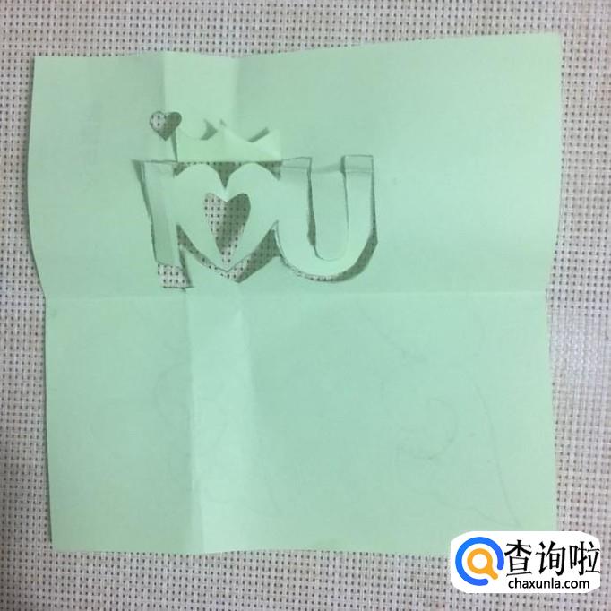 接着用剪刀剪出I LOVE YOU,如下图所示。注意上半部分不要剪断。