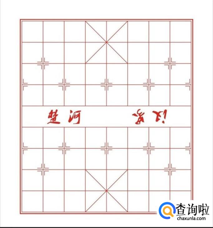棋盘以楚河、汉界为限分为两方阵营,黑红两色的棋子各占据一方