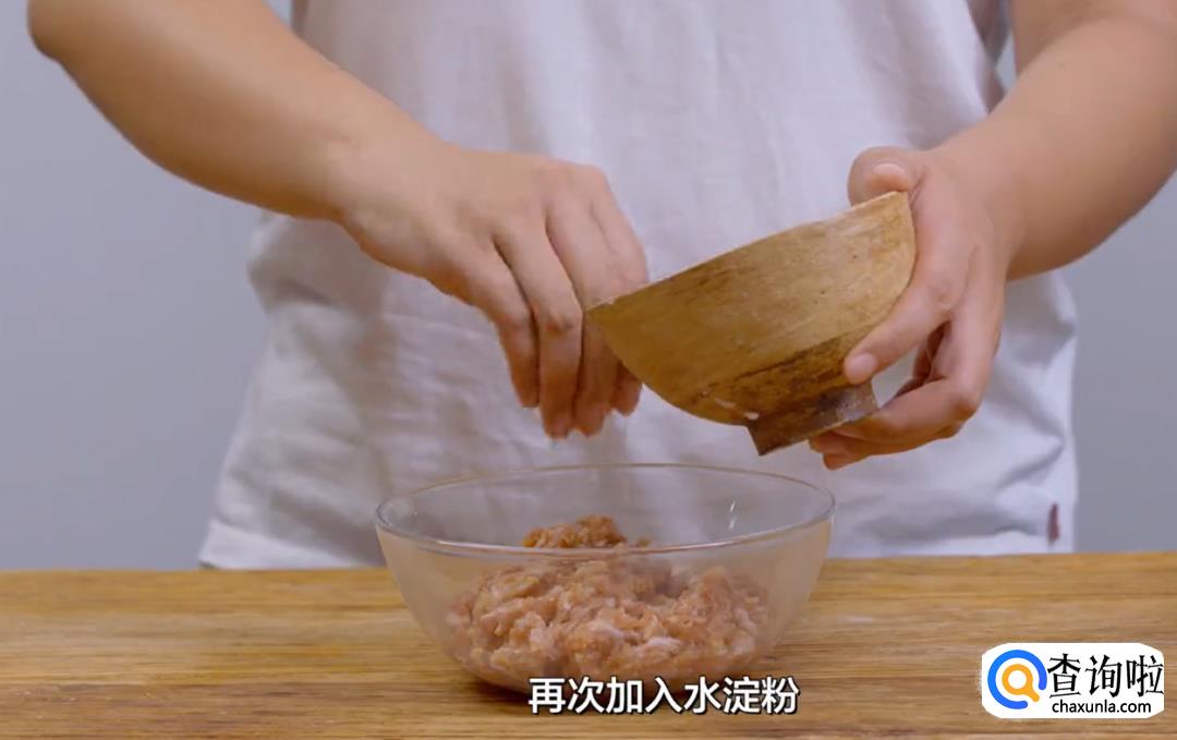 水淀粉要用水泡过并且沉底的水淀粉,这样不会给肉馅增添更多的水分。