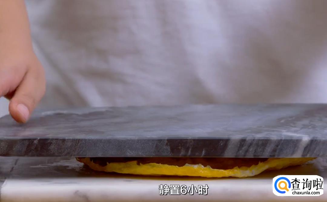 上蒸锅,将蛋皮冷水入锅,大火上蒸汽后转小火蒸40分钟,取出来压上重物静置6小时,但蛋皮和肉馅充分粘合,
