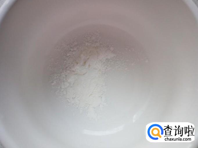 碗里放入一小匙儿淀粉,兑水,勾成薄芡。