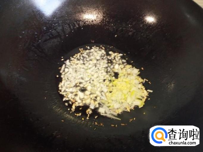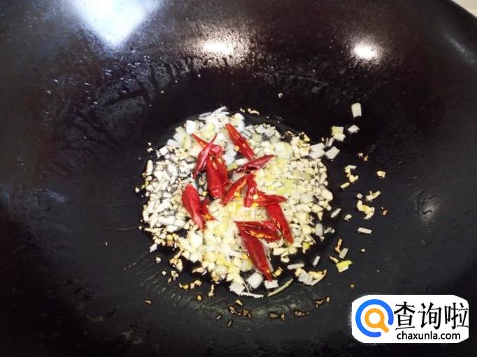 锅里放入油加热,油热后放入蒜,葱,姜,红干椒炒香(小火)。