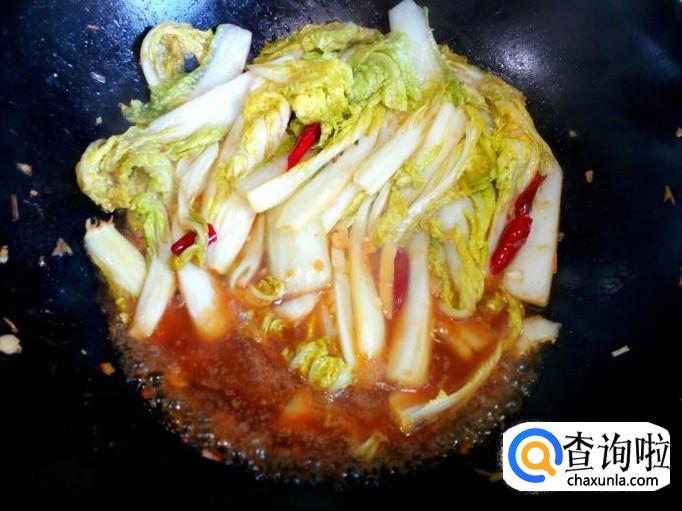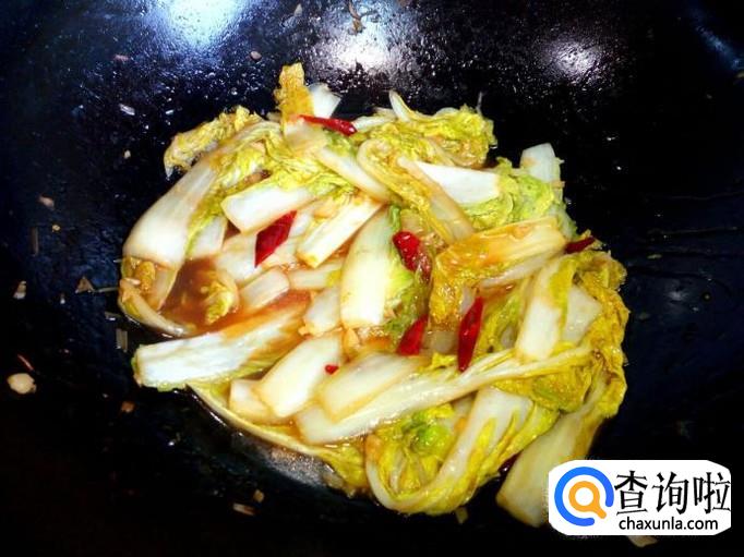 炒至娃娃菜变软,放入勾兑好的薄欠,芡汁粘稠后,放入味精,关火出勺。