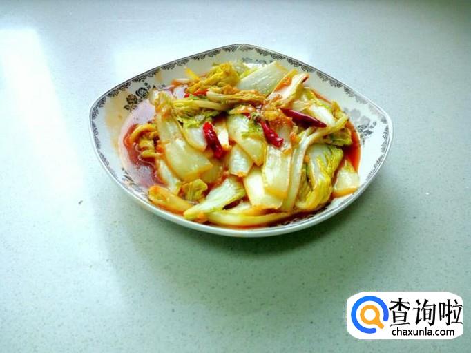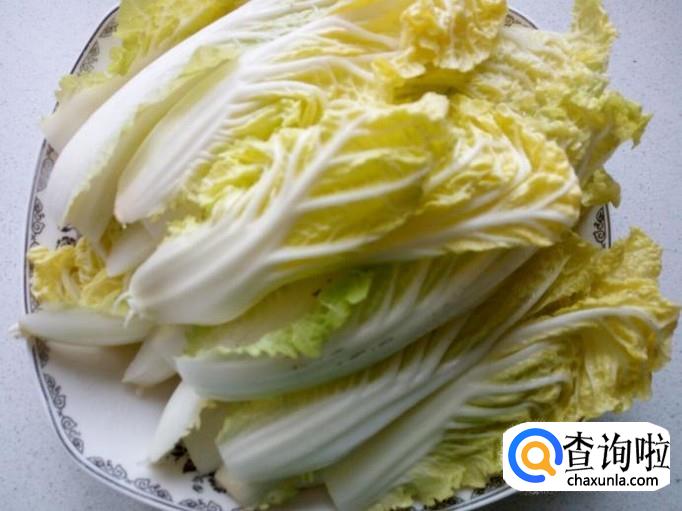 娃娃菜用水清洗干净,控干水分,切成宽条。
