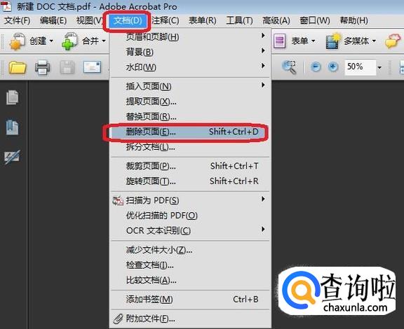 点击软件标题栏“文档”,在下拉菜单中选择“删除页面”。