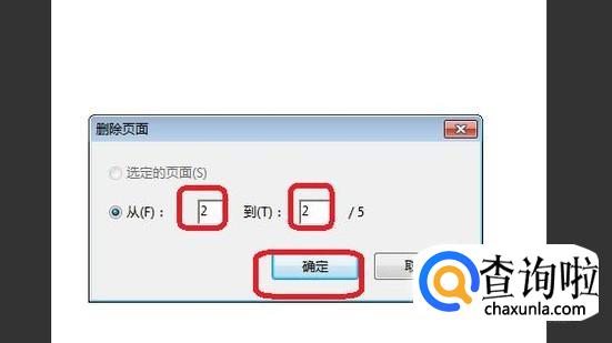 在弹出的选项框中,我们只需输入页码就可以删除空白页了,比如删除第2页是从“2”到“2”,删除前两页是从“1”到“2”。