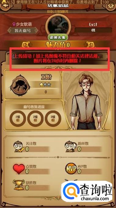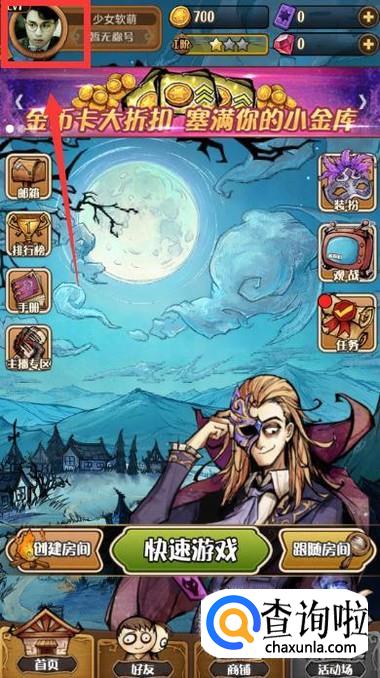 再进入登录到狼人杀的游戏页面后,点击页面左上角头像这一项,要是你是刚登录的新账号,头像会显示为空白的,需要你上传好看的头像。