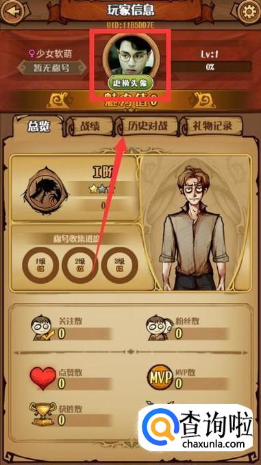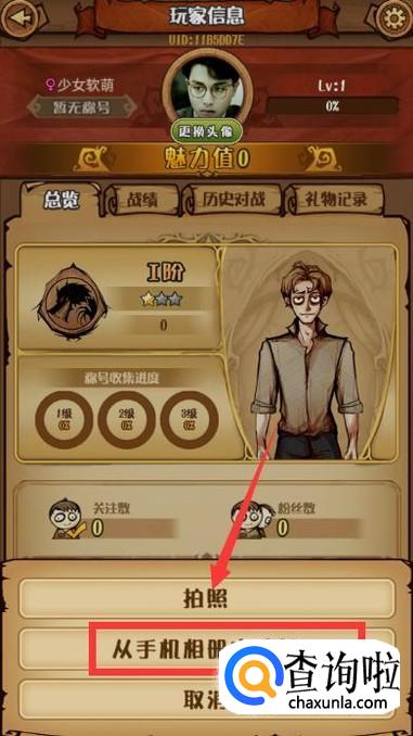 【玩家信息】的页面,在空白头像的页面点击下方的“更换头像”这一项。