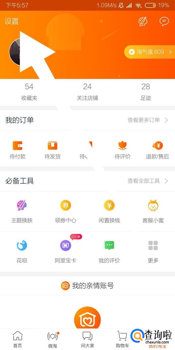 首先点击进入“我的淘宝”页面。