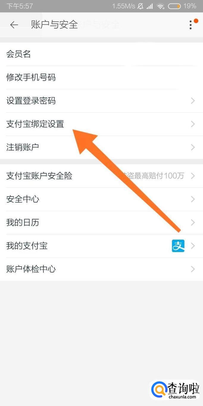 接着点击进入“支付宝绑定设置”选项。