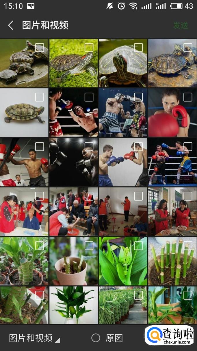 勾选图片,点上下方原图前面的按钮,点击右上角发送
